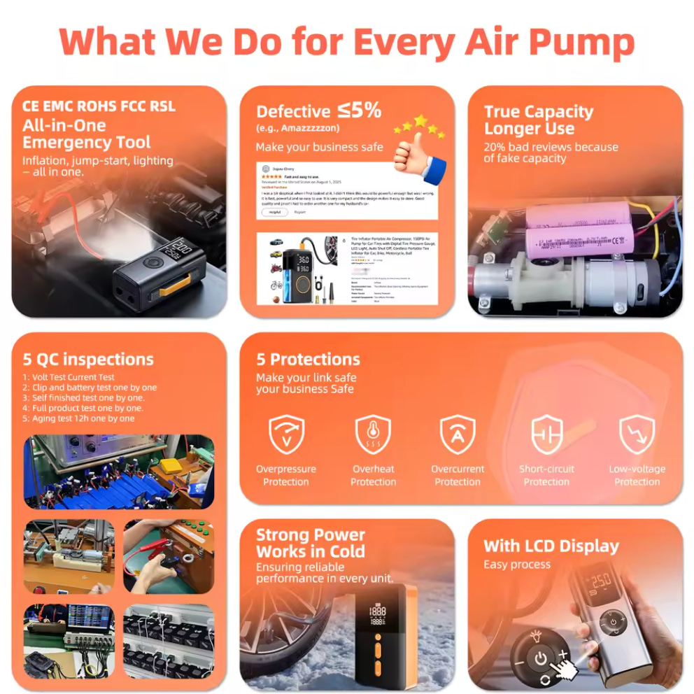 Bomba de Inflação para Pneus Aumentar a bomba de ar para pneus portátil compressor de ar elétrico bomba de pneu sem fio